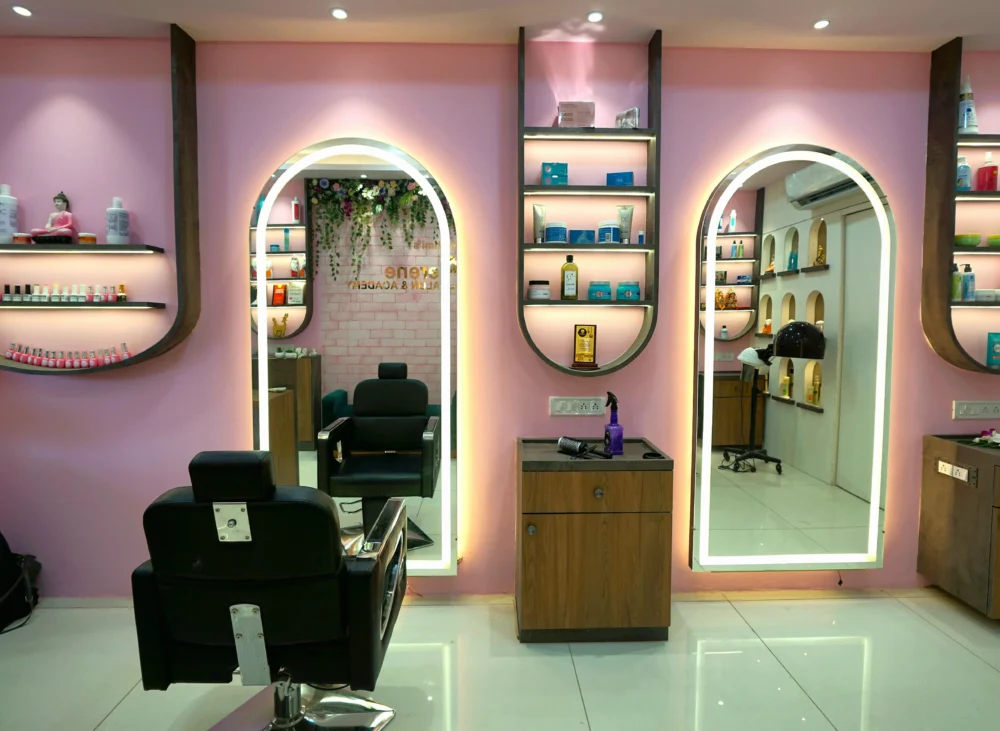 MAKEOVER SHOP Design in Details Considering the physical, mental, and emotional experience of clients, the makeover shop interior is designed using a human-centered approach that enhances comfort, confidence, and self-expression. The design focuses on creating a refined and inviting atmosphere through strategic lighting, soft color palettes, and elegant material selections. Ergonomic makeup stations, custom mirrors, and well-organized storage ensure efficiency and ease of use. Interior elements such as finishes, furniture, and lighting are thoughtfully curated to support hygiene, safety, and visual clarity, resulting in a contemporary makeover space that delivers a personalized and uplifting beauty experience.
